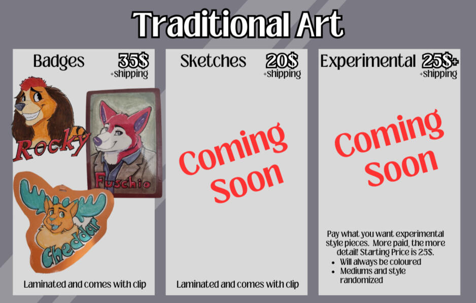 *All prices are starting prices. Extra charges may occur for complex characters, backgrounds, etc. Reach out for a proper quote!